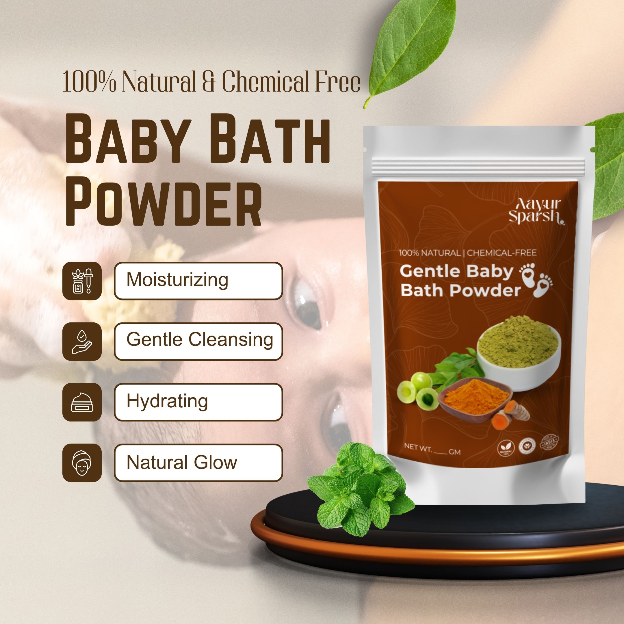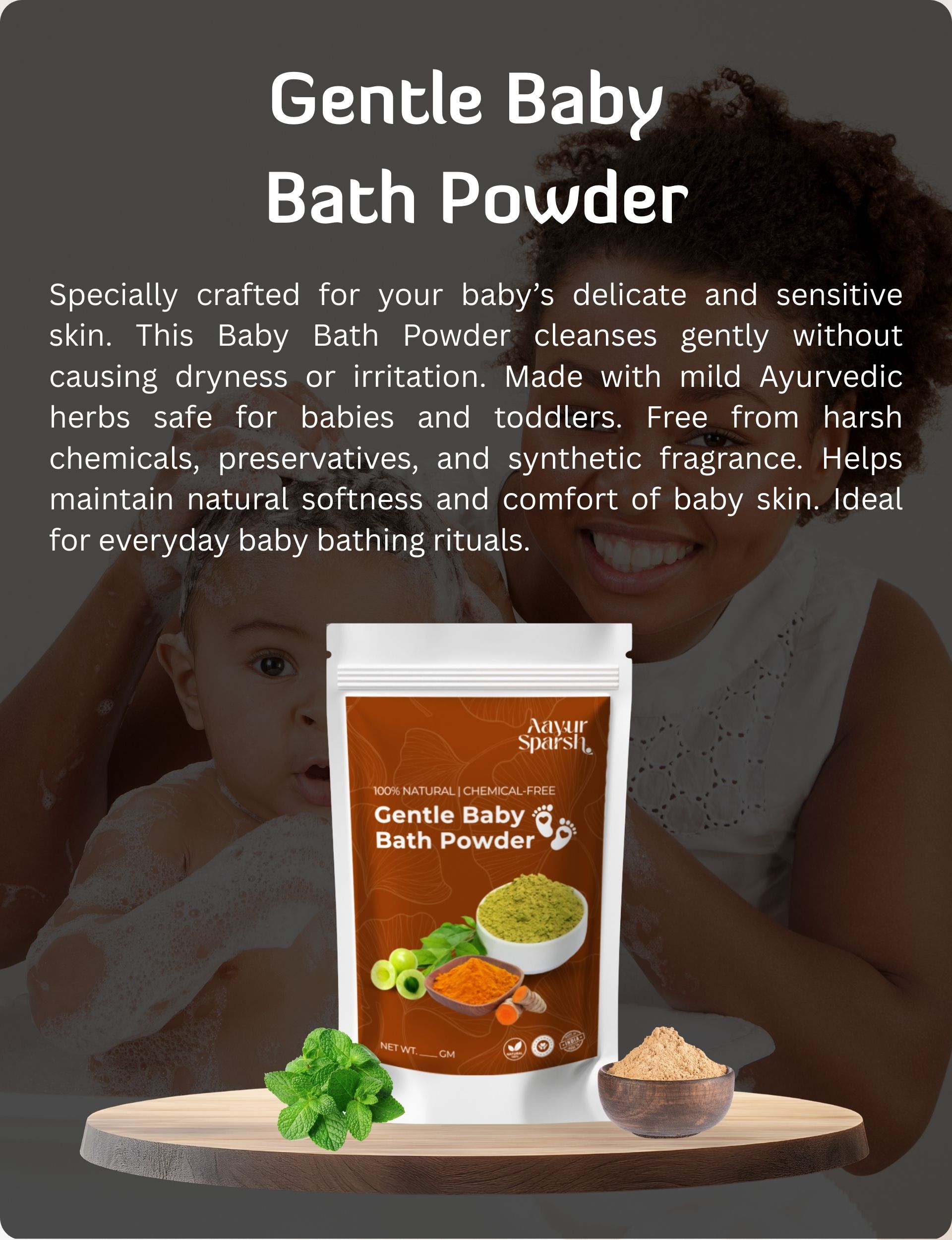Natural Ayurvedic Baby Bath Powder | Herbal Ubtan for Babies, Kids & Women | Gentle Skin Glow, Tan Removal & Purifying Cleanser | 100% Chemical-Free | 200gm
